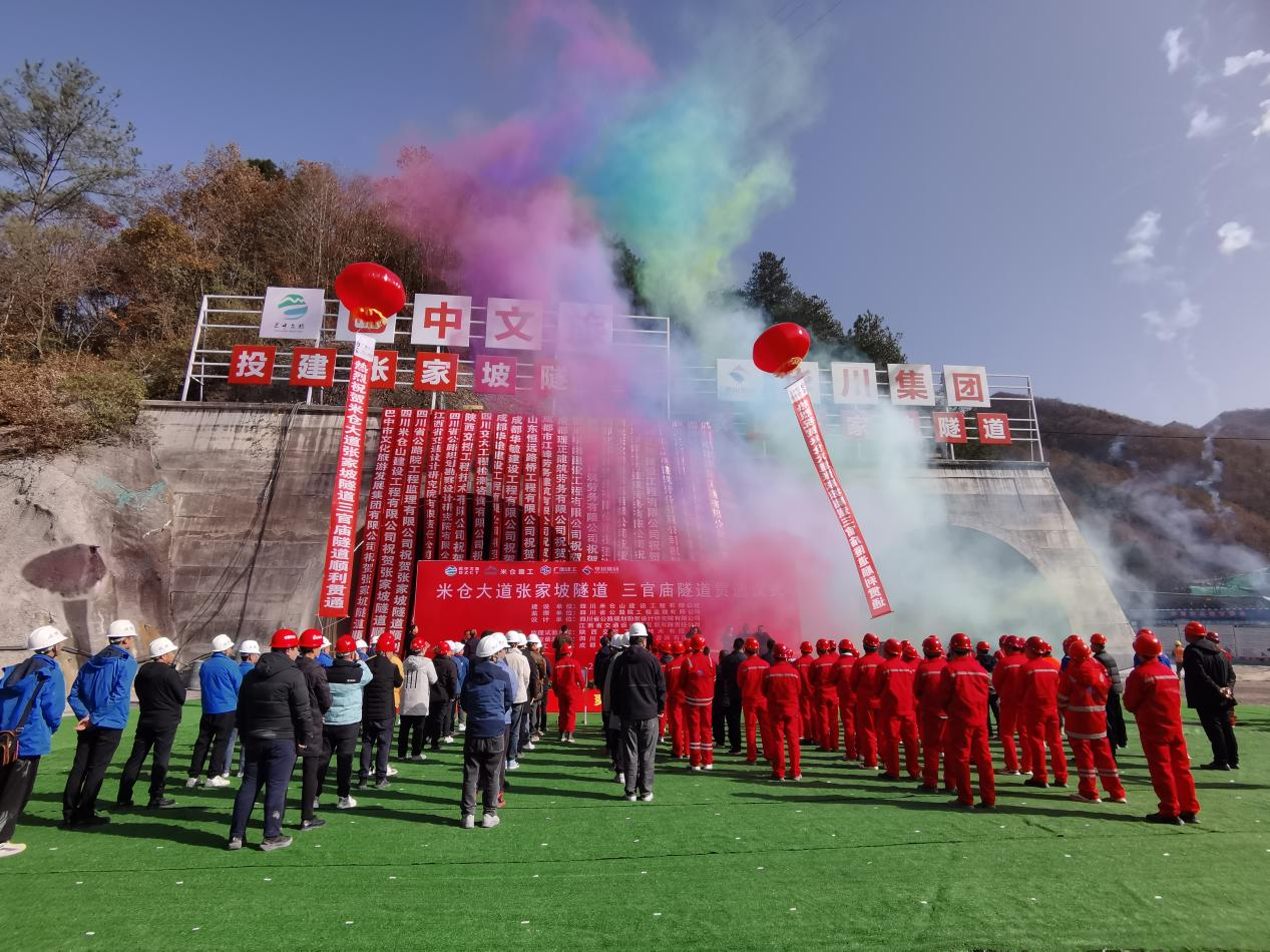 12月6日上午,米倉大道項目張家坡隧道、三官廟隧道貫通儀式在張家坡隧道出口端順利舉行,巴中市交通局局長張云清、巴中文旅集團董事長吳學毅、米倉建工董事長劉成華、通江縣組織部長張見銘等領導參加儀式并講話。